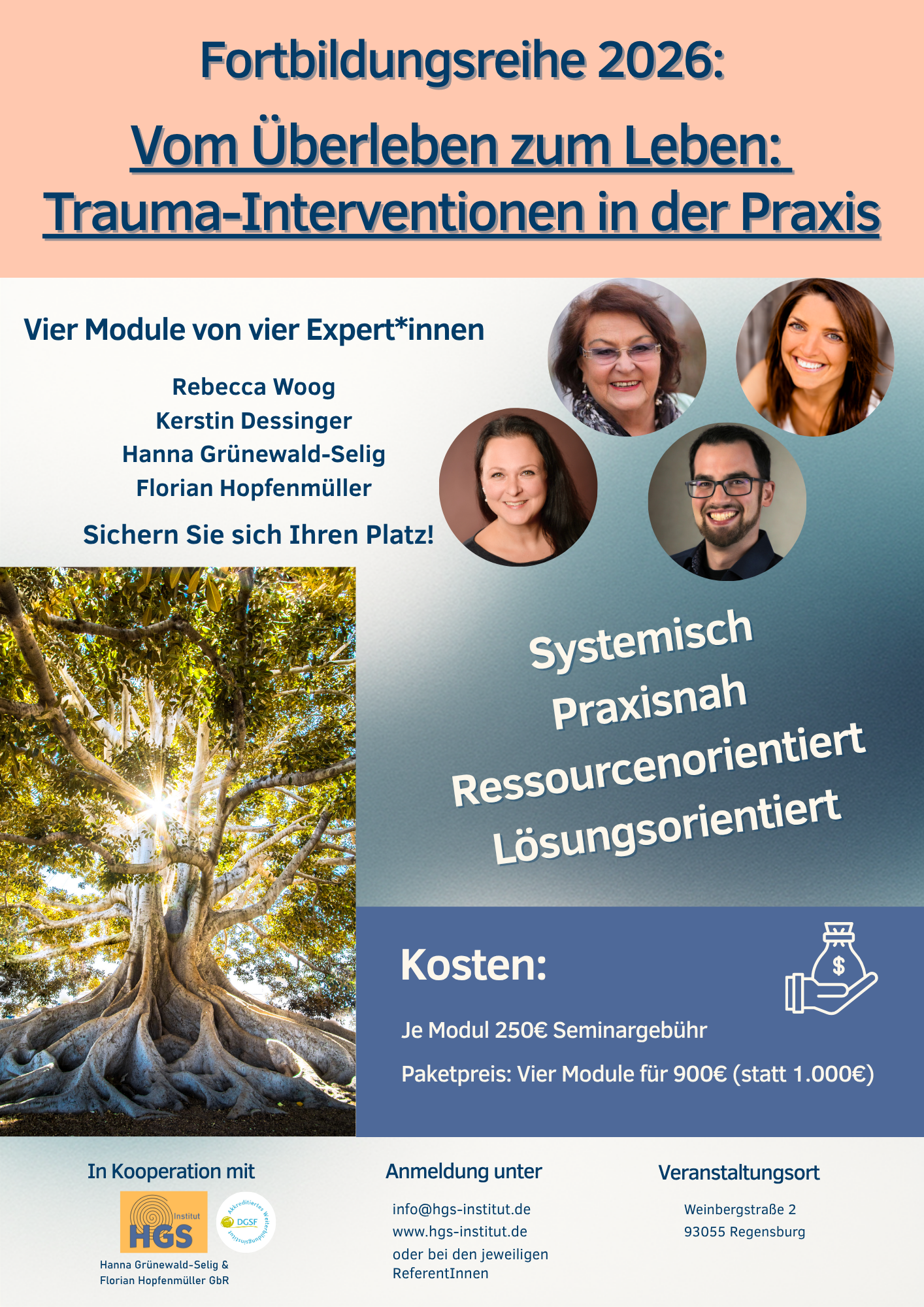 🧭 Systemisches kultursensibles Arbeiten mit traumatisierten Kindern und Jugendlichen📅 Freitag, 08. Mai 2026 | 9–16 Uhr | 8 UE📍 HGS-Institut, Weinbergstraße 2, 93055 RegensburgKinder und Jugendliche, die traumatische Erfahrungen gemacht [...]