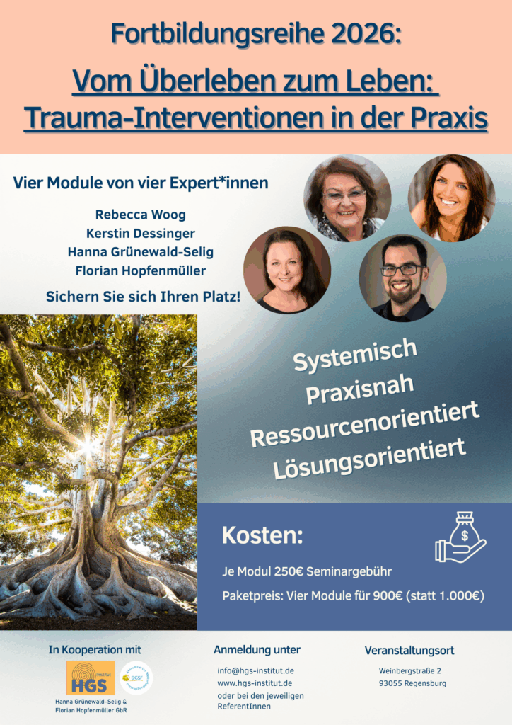 🧭 Systemisches kultursensibles Arbeiten mit traumatisierten Kindern und Jugendlichen📅 Freitag, 08. Mai 2026 | 9–16 Uhr | 8 UE📍 HGS-Institut, Weinbergstraße 2, 93055 Regensburg Kinder und Jugendliche, die traumatische Erfahrungen […]